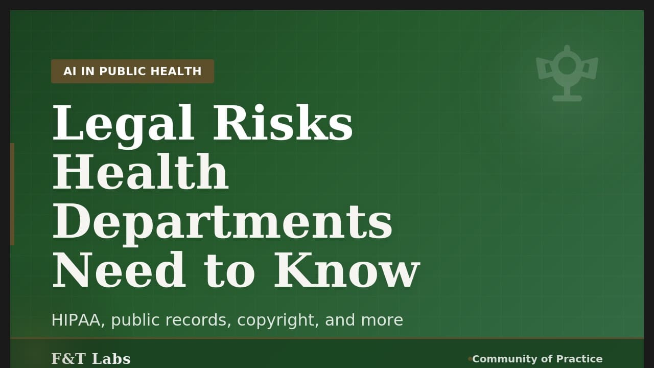 This is peer learning, not formal training. While F&T Labs offers structured AI training courses for health departments, the Community of Practice is about conversation, shared experiences, and learning from each other. Think of it as a professional learning community rather than a classroom.